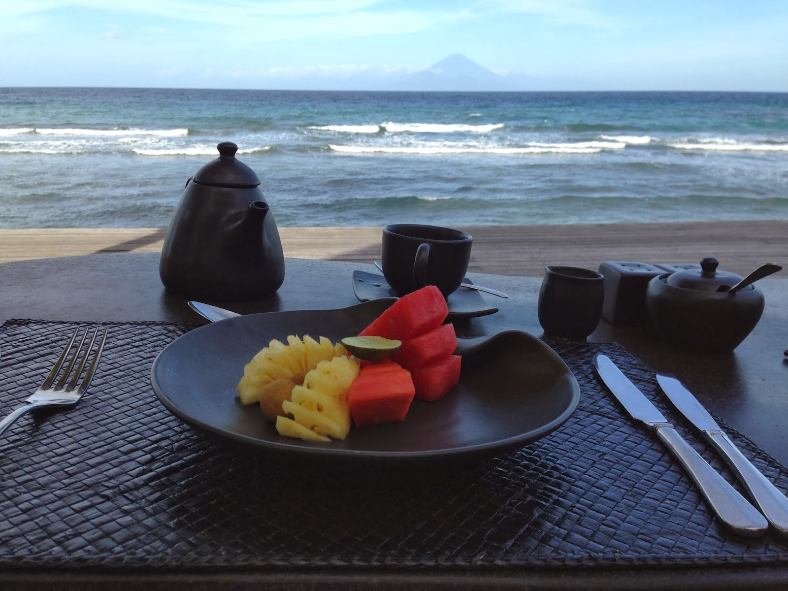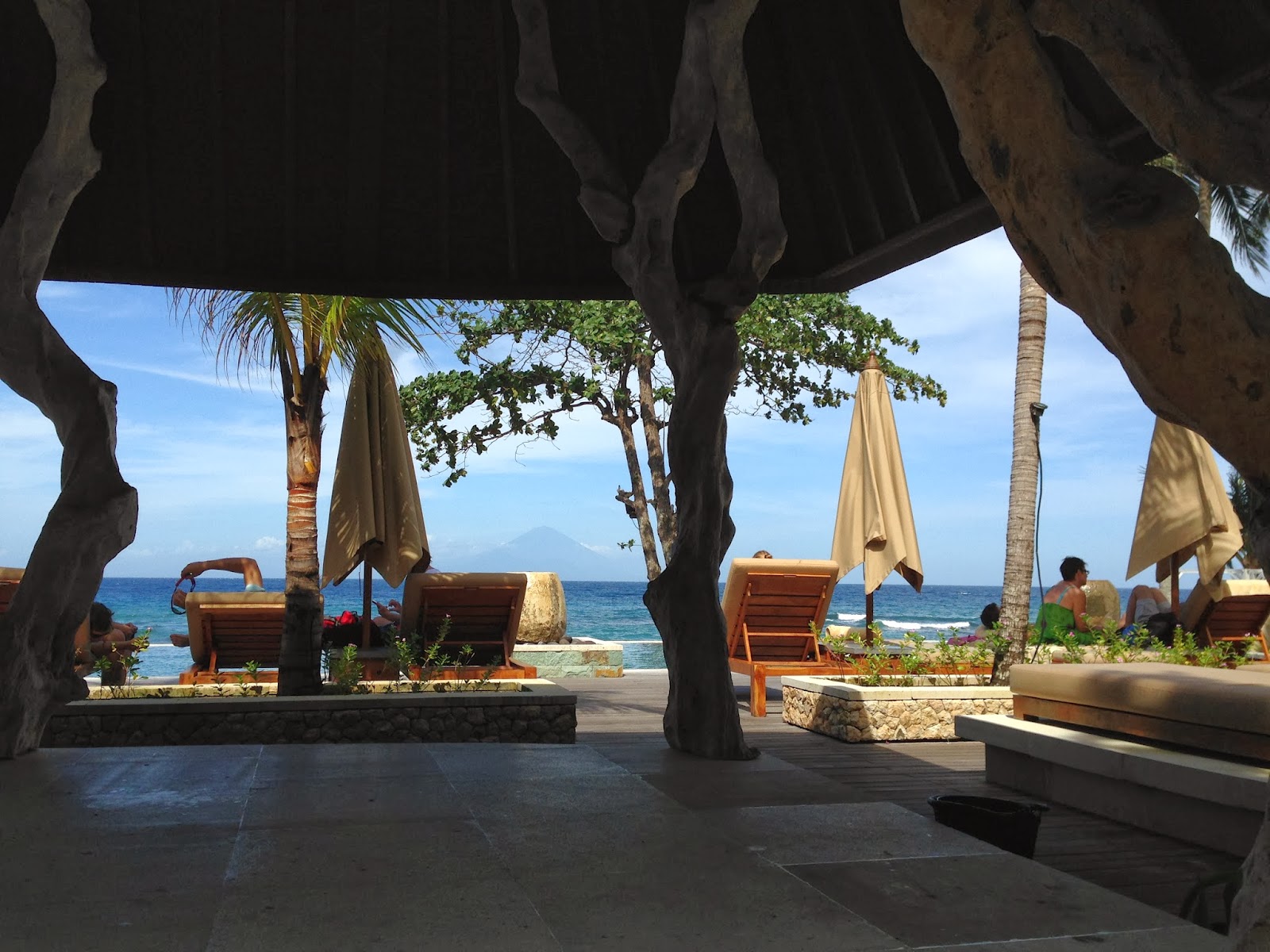Our bedroom directly opens into a view of one of the swimming pools right in front of the sea. That huge mountain from across is in Bali. It’s quite famous and I had a pic with the view of it when I visited Bali but I forgot the mountain’s name.