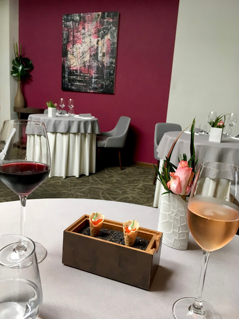 The chef was nice enough to thank us and to escort us to the door on our way out. Although he seemed to be a bit shy, and did not ask us about the food. Speaking of the food, I enjoyed so much the amuse bouche of miniature wafer cones stuck into a box of black sesame seeds. It was a good way of starting the lunch. The champagne that I had with the entrée was very nice and pleasant in the throat, and was a lovely rose color. The mackerel entrance looked very appetizing and the taste did not disappoint. I also find that it is a perfect size/portion for a three-course meal. As for the main dish of Duck Breast, it was not my favorite. And I find that they sliced it too thick, which might have caused it to be a little bit tough to chew in some parts. Although, it was pleasantly refreshing with the fennel and quinoa, nonetheless. The red wine that I paired it with did not really have a lot of character, although it was the peppery type, which I like. Sorry, I forgot the name of the wine but it starts with the letter D, Durvas or something. It’s one of those wines that are versatile, goes with almost any type of food. Maybe it’s what they call a “table wine”, but I have to verify this. It even went well with the rhubarb ice cream and the caramelized pineapple that we had for dessert.