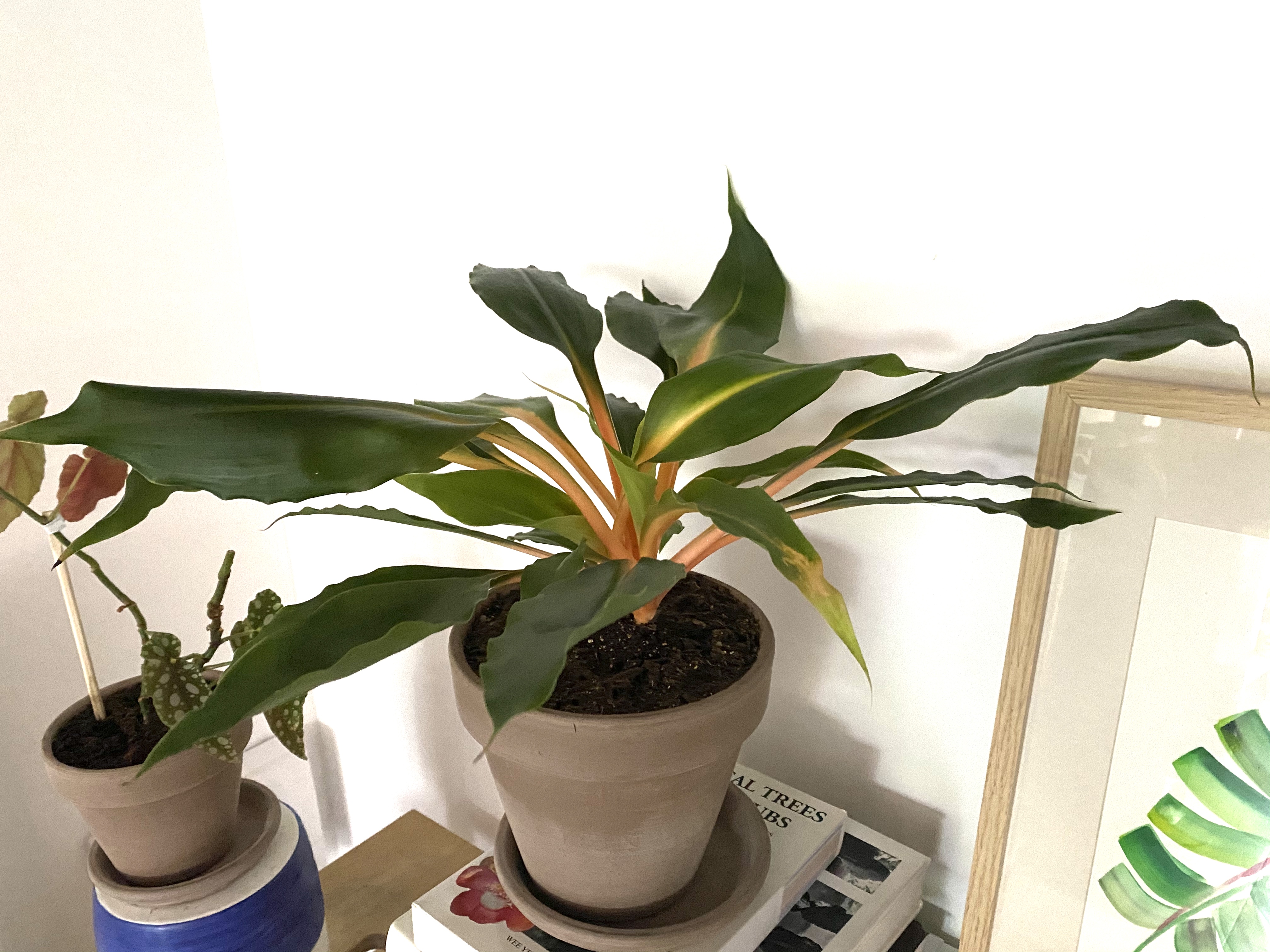 As for the Calathea, it’s doing quite well. I read that it needs to be a little bit farther away from bright sunlight, so it’s in an area with less light since the very beginning. I didn’t know this at first, just guessed that it would do well away from the windows. And I was right!
