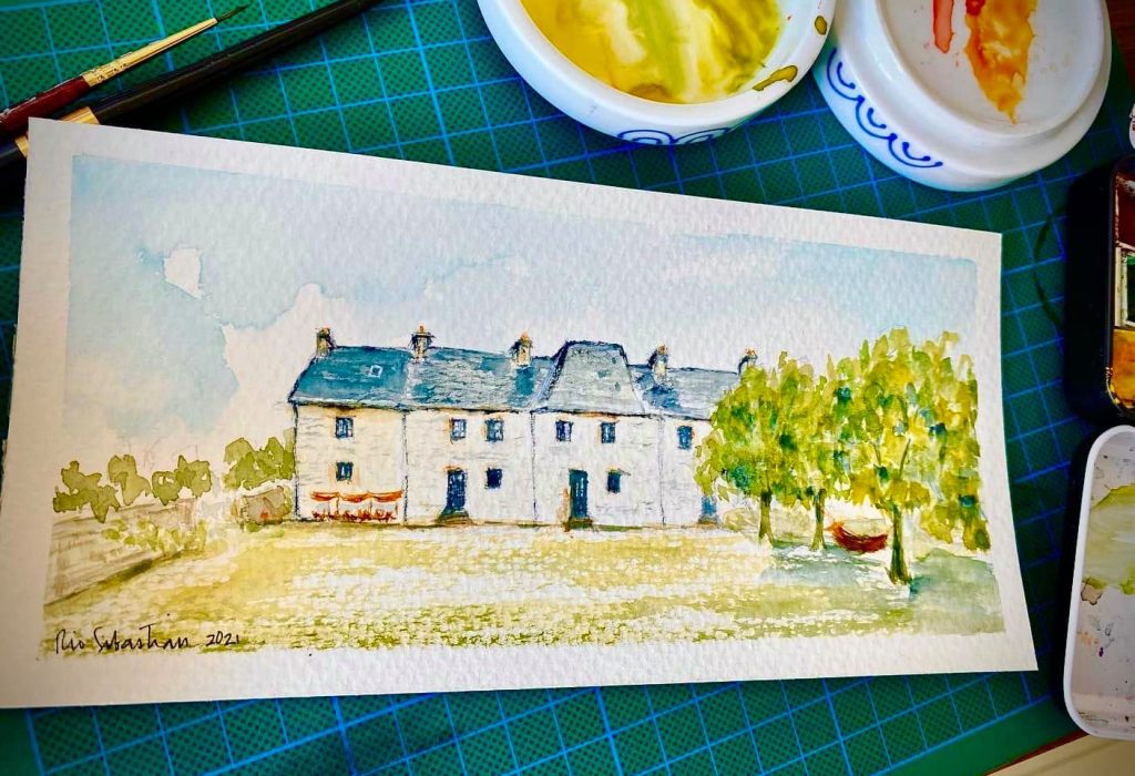 We stayed in four different places, but the one that I fell in-love with was this manoir (Le Manoir du Guern) with a lovely orchard. It’s a manor from the 10th century, that at one point was turned into a presbytère. I couldn’t help but make a painting out of it, which I sent to the owners to thank them for such a wonderful time we had during our stay there. They replied to me saying that they’ve found a cozy nook for it on top of their fireplace at the manor.