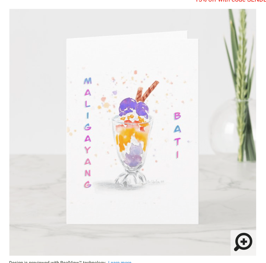 Since I’m always missing the tropics, especially, the beach, I’ve created this tropical themed greeting card. If you guys are interested, I sell some greeting cards, and other gift items with my original watercolor prints on them on zazzle.com. Mostly, Filipino themed. This year, I am so happy to have sold quite a lot! I’m finally going to be able to cash out my earnings! 🙂 What a treat. Thanks to those who patronized my humble artworks.